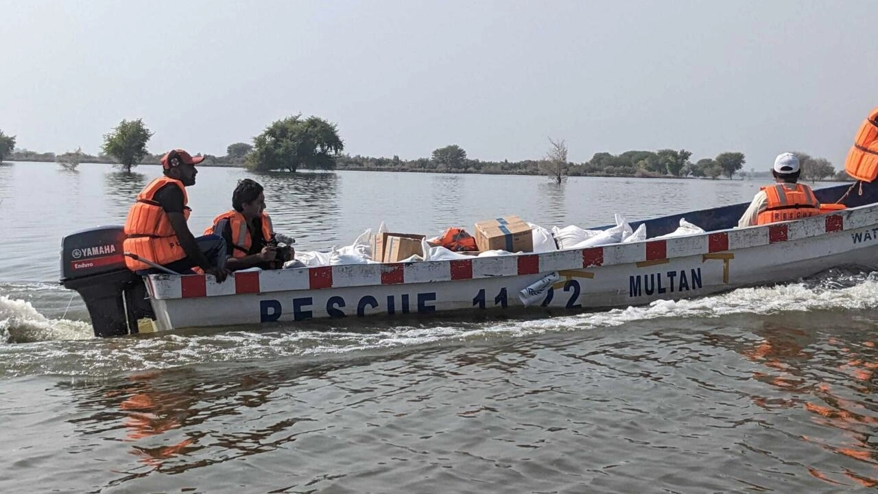 Pakistani relief workers continue to intervene in the disaster-hit areas to bring food aid. © FRANCE 24 / Sonia Ghezali