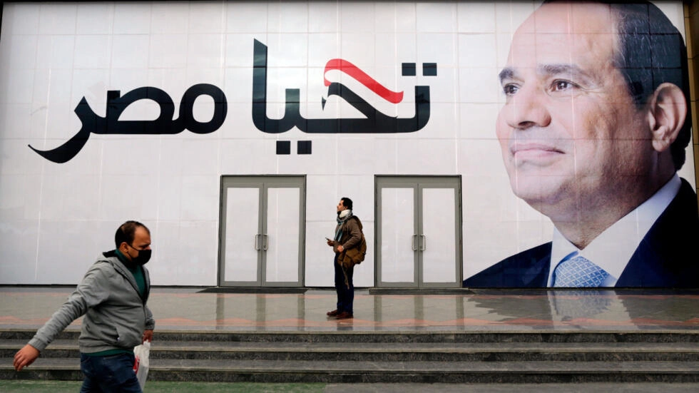 File photo: A man walks in front of a billboard for Egyptian President Abdel-Fattah al-Sisi reading “Long live Egypt”, Cairo, Egypt, January 27, 2022. © Amr Nabil, AP archive