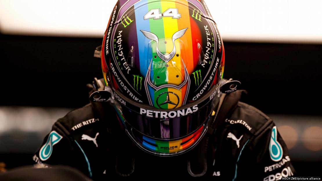 Lewis Hamilton wearing a rainbow-coloured helmet at the Qatar Grand PrixImage: HOCH ZWEI/picture alliance
