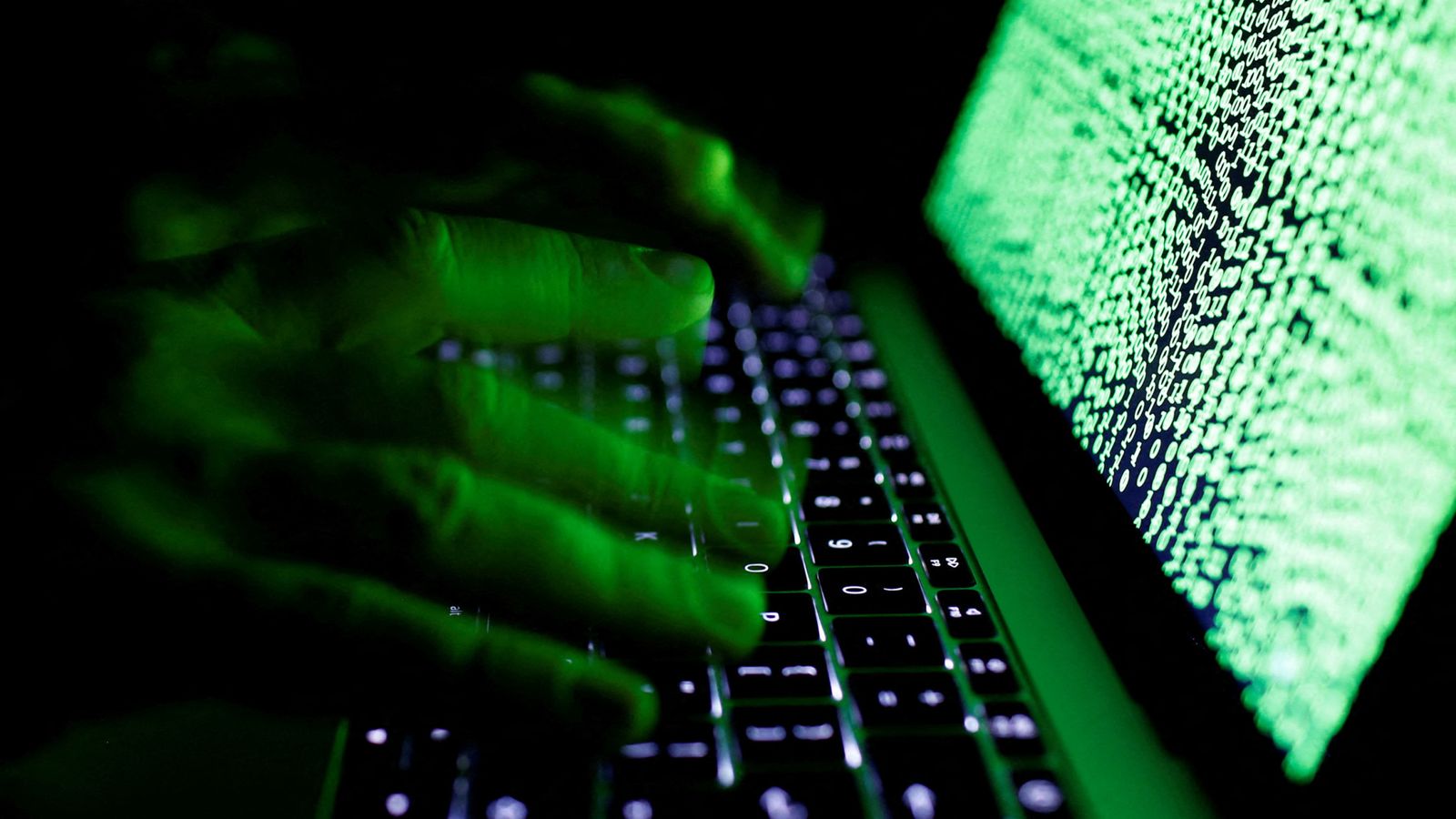 FILE PHOTO: A man types on a computer keyboard in front of the displayed cyber code in this illustration picture taken on March 1, 2017.REUTERS/Kacper Pempel/Illustration/File Photo