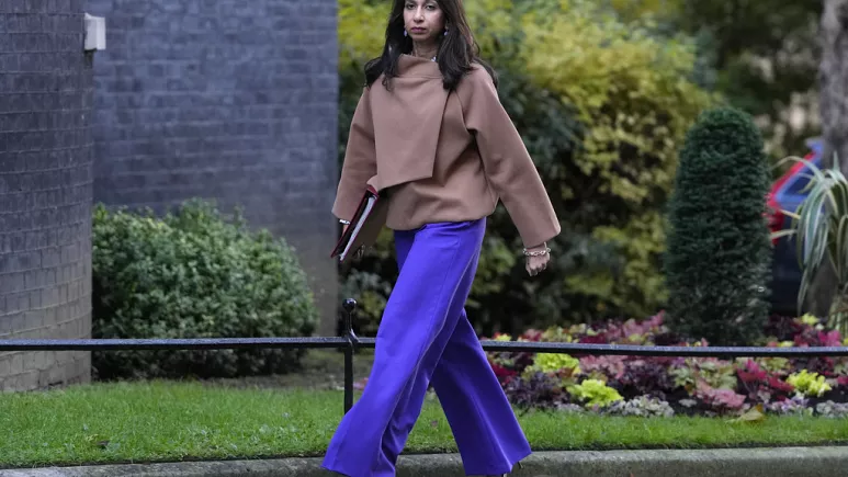 Britain’s Home Secretary Suella Braverman arrives for a cabinet meeting in 10 Downing Street in London, Tuesday, Oct. 31, 2023.