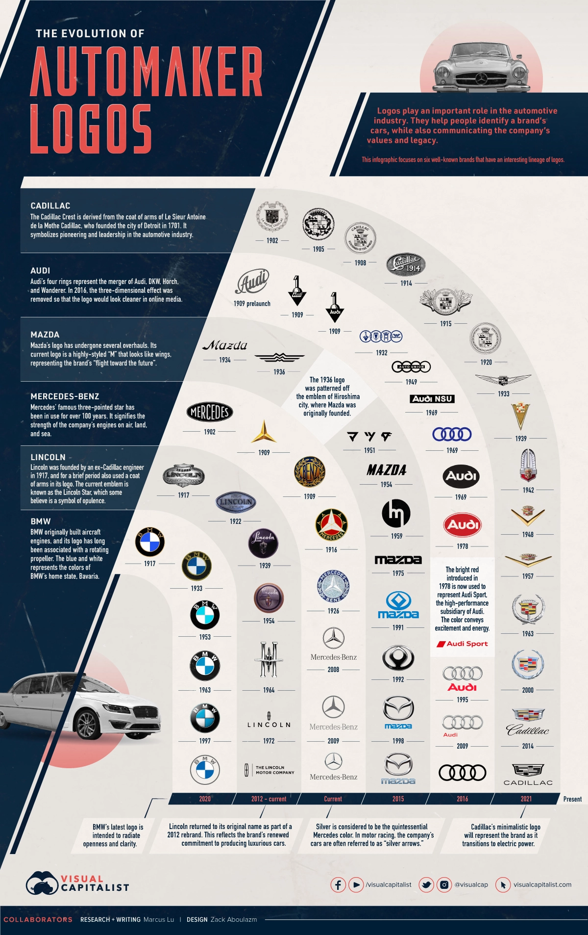 Editor’s note: There are obviously many automotive brands with strong histories, but for this visualization we selected brands that we thought had the most interesting stories and graphical decisions behind their emblems. In the future, we may add more or create a follow-up post if readers express interest.