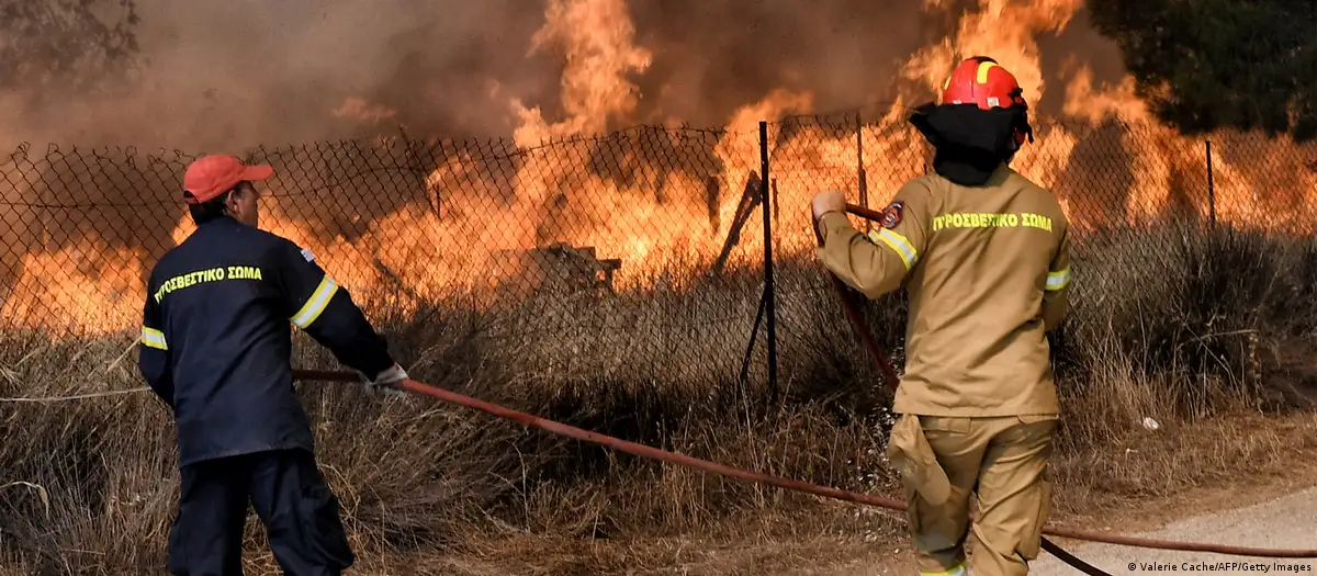 Greek firefighters battle a wildfire near the resort town of Loutraki, some 80 kilometres east of AthensImage: Valerie Cache/AFP/Getty Images