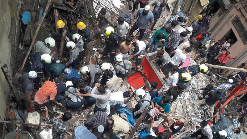 Rescue operation under way following the collapse of four-storey residential building in Mumbai’s Dongri area.