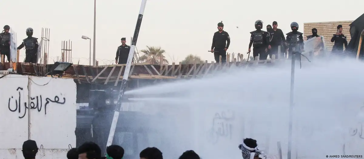 Iraqi riot police fired water cannons to break up the protests while security forces armed with electric batons chased protesters, an AFP photographer on the scene reported.
