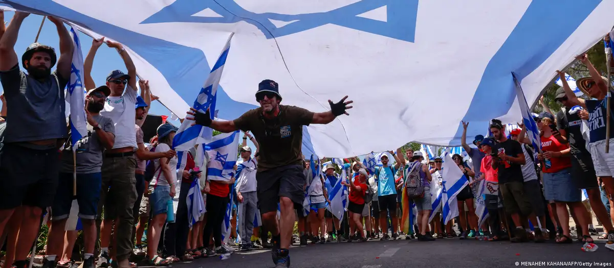 The judicial reform has led to a deep divide in Israeli societyImage: MENAHEM KAHANA/AFP/Getty Images