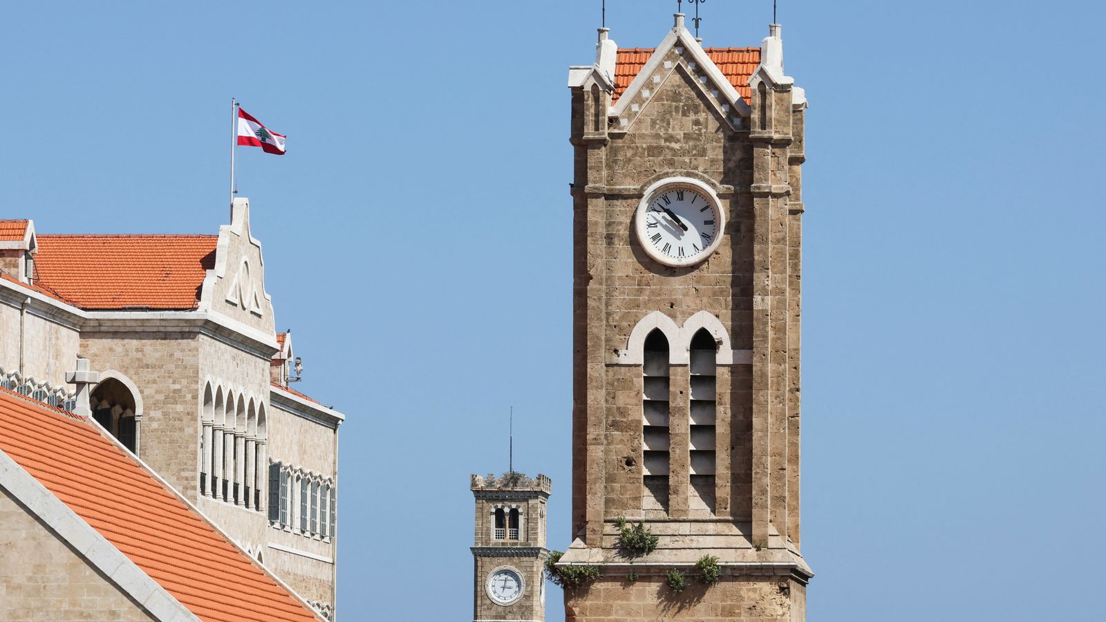Clock towers are pictured near the government palace in Beirut, Lebanon