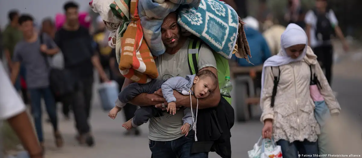 Tens of thousands of Palestinians have fled northern Gaza in the past few days amid Israel’s ground offensiveImage: Fatima Shbair/AP Photo/picture alliance