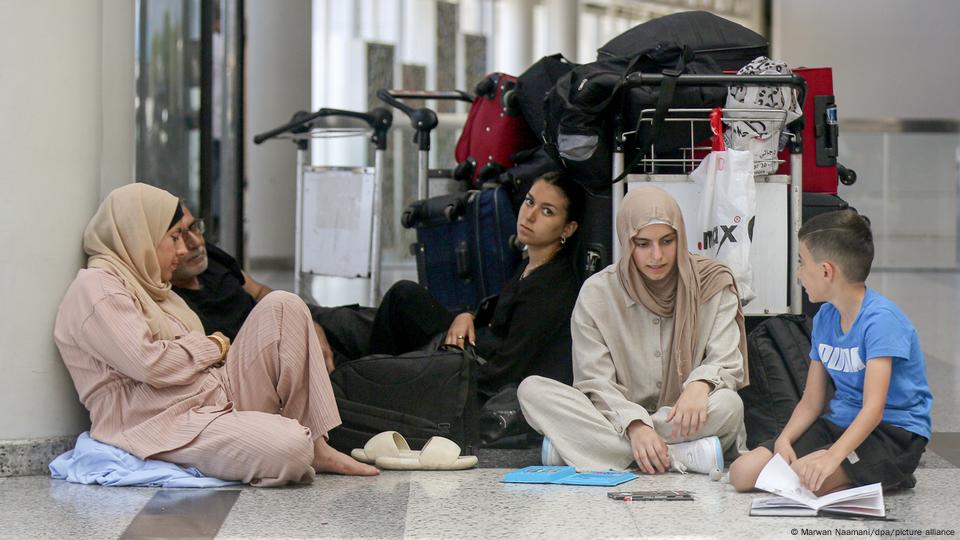 Various airlines have suspended their flights to and from Beirut, where frustrations were growing at Lebanon’s only international airportImage: Marwan Naamani/dpa/picture alliance