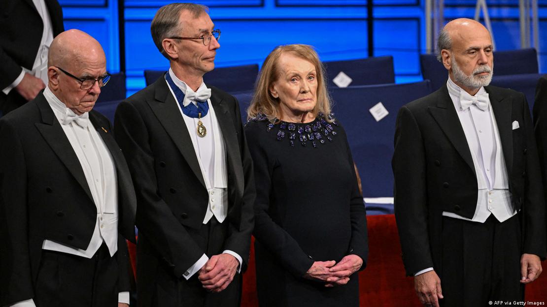 US chemist K. Barry Sharpless, Nobel Prize in Physiology or Medicine 2022 laureate Swedish geneticist Svante Paabo, Nobel Prize in Literature 2022 laureate French writer Annie Ernaux and Laureate of The Sveriges Riksbank Prize in Economic Sciences in Memory of Alfred Nobel 2022 Ben Bernanke are seen during the start of the Nobel Prize award ceremony for literature, science and economy at the Concert Hall in Stockholm, Sweden on December 10, 2022US chemist K. Barry Sharpless, Nobel Prize in Physiology or Medicine 2022 laureate Swedish geneticist Svante Paabo, Nobel Prize in Literature 2022 laureate French writer Annie Ernaux and Laureate of The Sveriges Riksbank Prize in Economic Sciences in Memory of Alfred Nobel 2022 Ben Bernanke are seen during the start of the Nobel Prize award ceremony for literature, science and economy at the Concert Hall in Stockholm, Sweden on December 10, 2022
