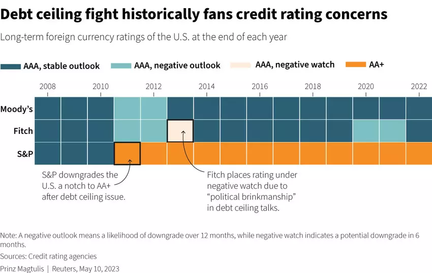 If the debt ceiling is not lifted and the US defaults on its debt, it could affect its credit rating, potentially raising the cost of borrowing even further.