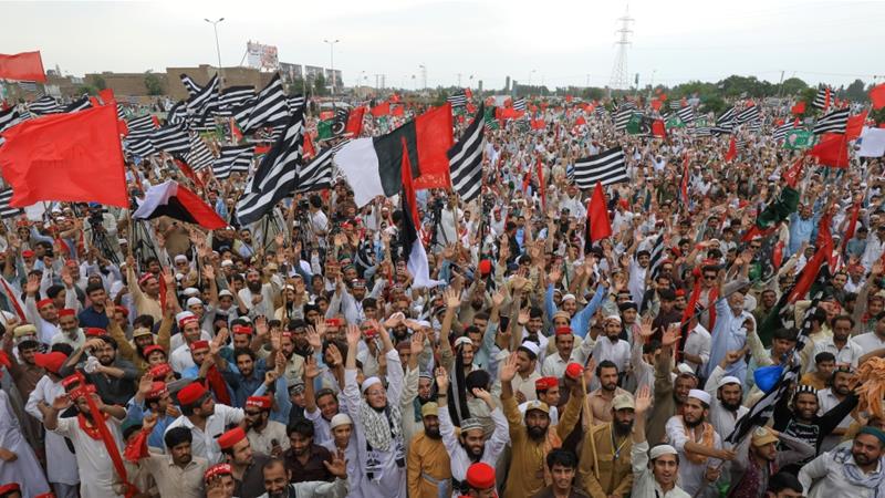 ![Supporters of the opposition JUI-F party chant slogans at an anti-government protest in the capital Islamabad [Asad Hashim/Al Jazeera] Supporters of the opposition JUI-F party chant slogans at an anti-government protest in the capital Islamabad [Asad Hashim/Al Jazeera]](https://www.aljazeera.com/mritems/Images/2019/7/25/93eaf957b5e141d1a264055589dc5e1e_18.jpg)