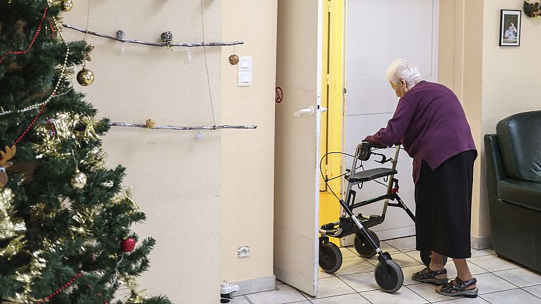 A retirement home resident walks in a public EHPAD housing establishment in Saint-Sulpice-La-Pointe, southern France, 4 January 2023 – Copyright Charly TRIBALLEAU / AFP