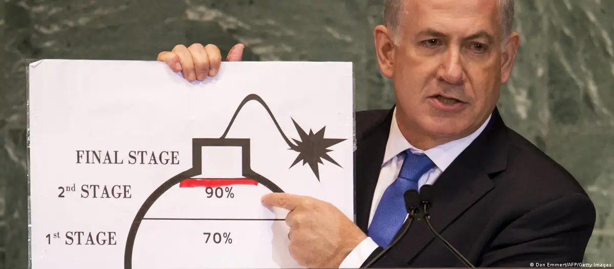 Netanyahu himself once literally drew his red line in the nuclear dispute with Iran with a felt-tip pen. In September 2012, the Israeli prime minister warned the UN General Assembly that Tehran was on the verge of finishing a nuclear bomb. To drive his point home, he drew a red line on a picture of a bomb, representing a threshold that should never be crossed.
