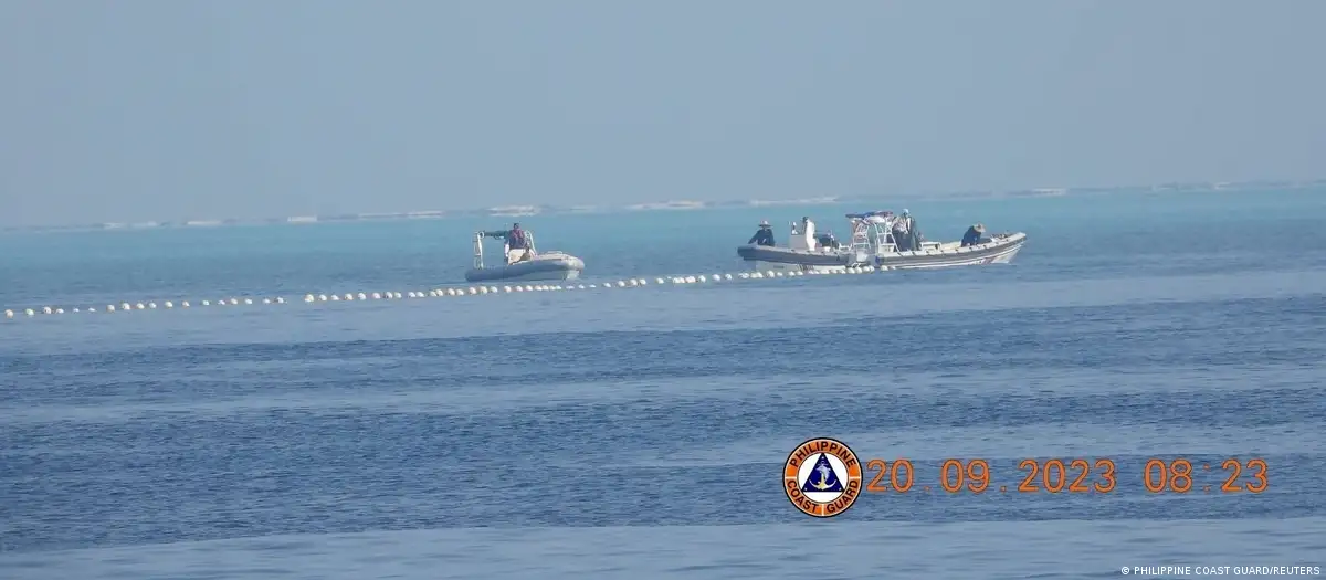 Chinese Coast Guard boats close to the floating barrier are pictures on September 20, 2023, near the Scarborough Shoal in the South China Sea, in this image released by the Philippines Coast Guard on September 24Image: PHILIPPINE COAST GUARD/REUTERS