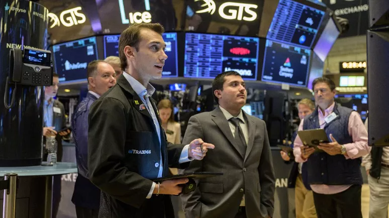 Traders work on the floor of the New York Stock Exchange during opening bell in New York City
