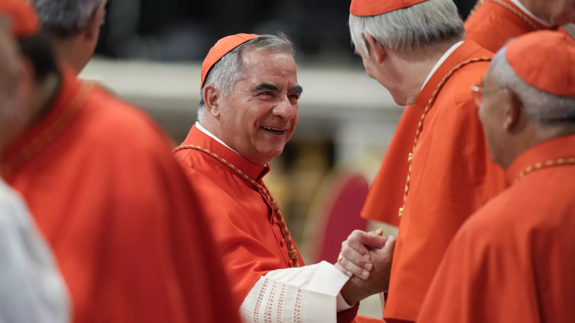 Cardinal Angelo Becciu attends a consistory inside St. Peter’s Basilica, at the Vatican in August