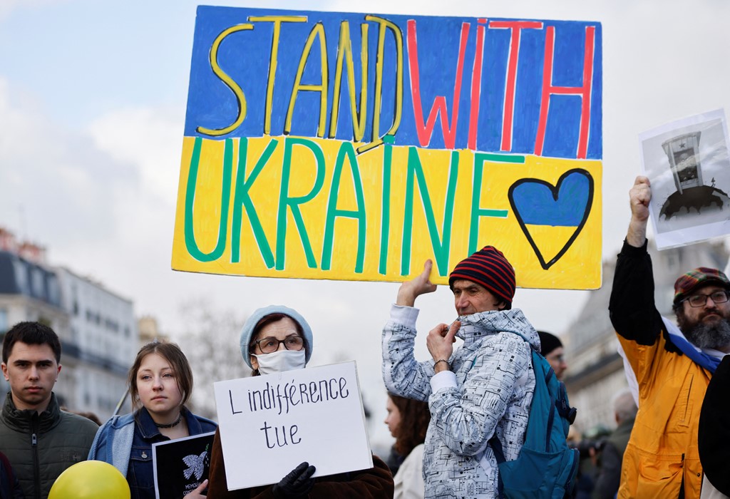 In pictures: Demonstrators attend rally in solidarity with Ukraine in Paris