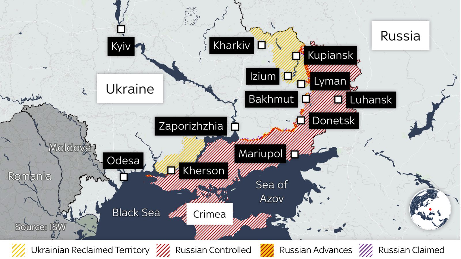 A map of the conflict on the one-year anniversary