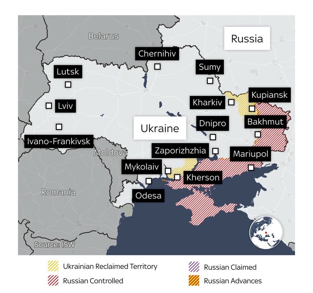 The war in Ukraine is now focused in the country’s eastern Donbas region where Russia wants control over all four of the provinces it illegally annexed in September.