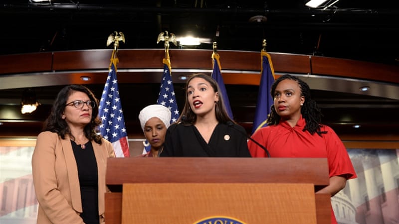 Alexandria Ocasio-Cortez, Ilhan Omar, Ayanna Pressley and Rashida Tlaib, some of whom he has repeatedly railed against in the past, are US citizens and all except for Omar were born in the United States.