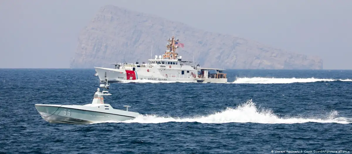 The Strait of Hormuz, where the seizure attempts took place, is a strategic narrow passageway through which some 20% of all crude oil goesImage: Vincent Aguirre/U.S. Coast Guard/AP/picture alliance