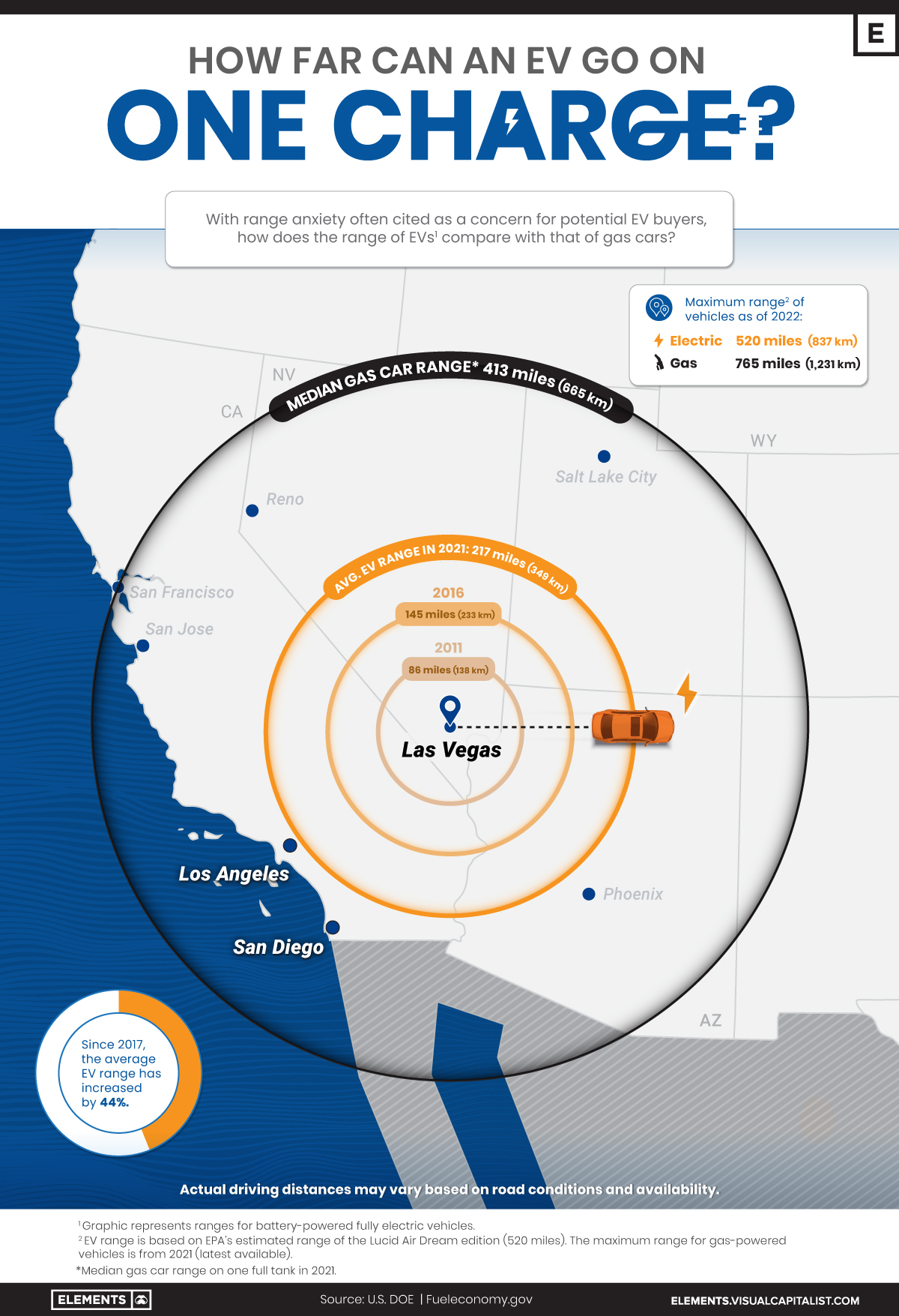 ENERGYVisualizing the Range of Electric Cars vs. Gas-Powered CarsPublished 1 month ago on September 30, 2022