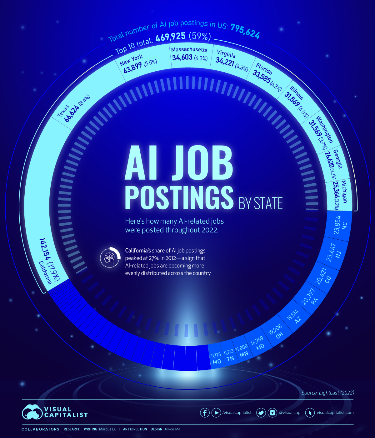 TECHNOLOGYVisualizing the Top U.S. States for AI JobsPublished 1 day ago on May 26, 2023