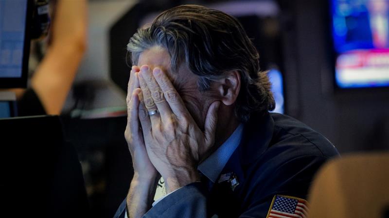 The series of actions sank all three major US stock indexes at closing on Monday, with the Dow Jones industrial average shedding as much as 961 points, or nearly three percent, before recovering to close at 767 down.