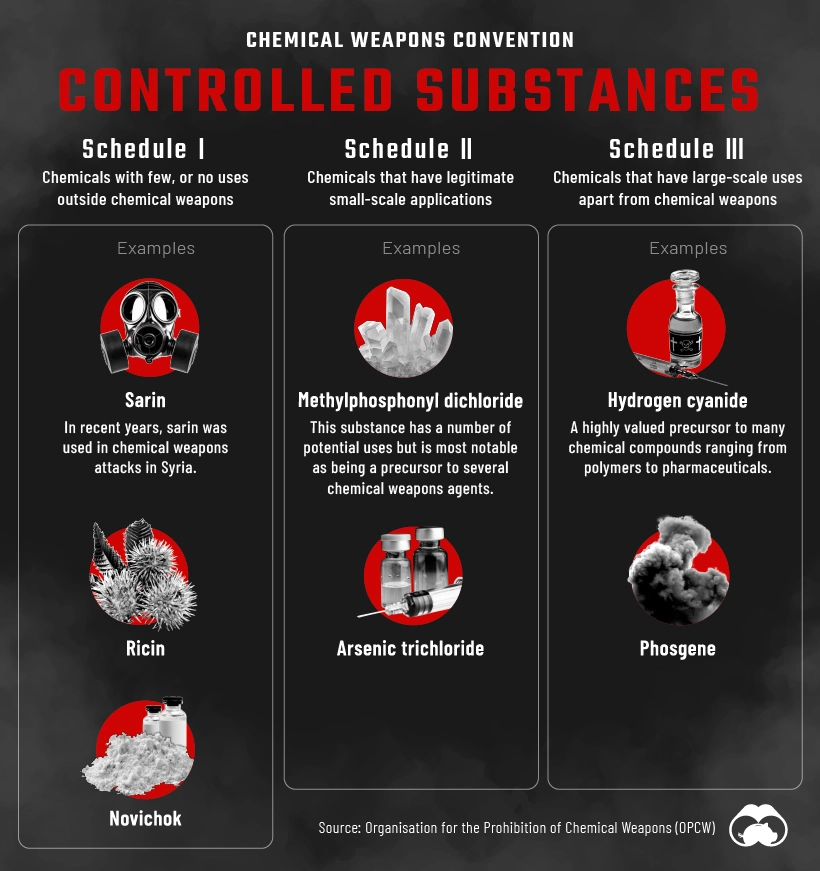 examples of banned and controlled chemical weapons