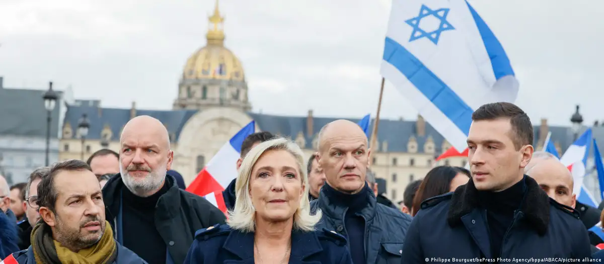 Marine Le Pen’s National Rally party has been trying to distance itself from its founder’s antisemitismImage: Philippe Bourguet/bePress Photo Agency/bppa/ABACA/picture alliance