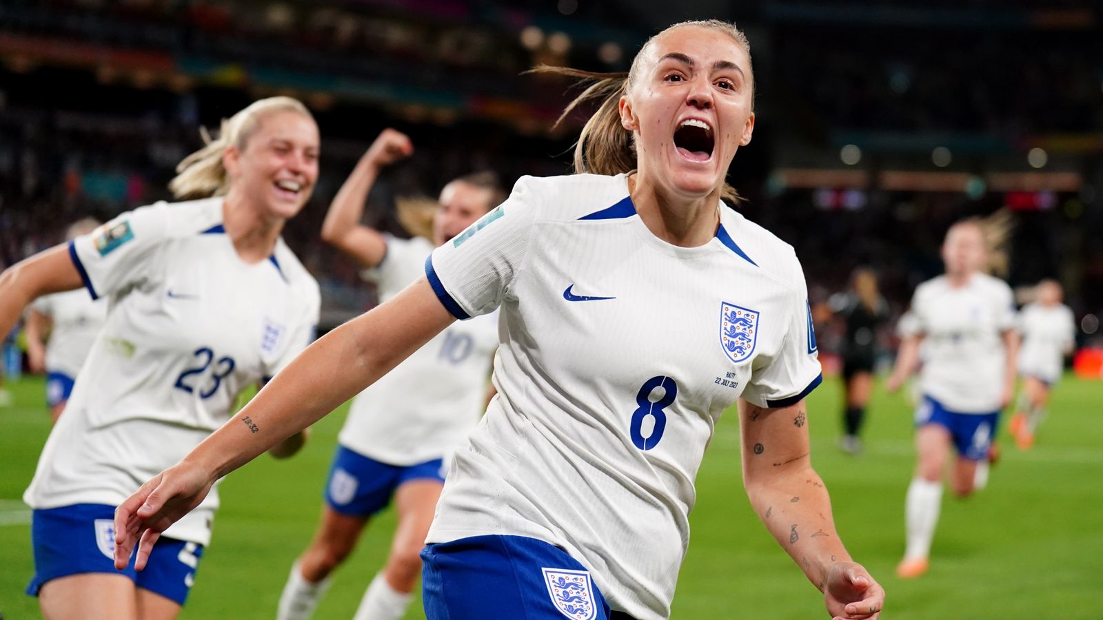 England's Georgia Stanway (second left) celebrates scoring their side's first goal of the game during the FIFA Women's World Cup 2023